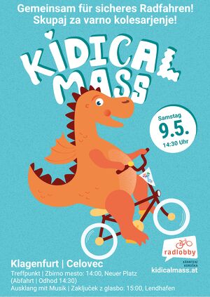 Sa 09.05.2026, von 14:00 bis 17:00 Uhr Abfahrtszeit 14:30 Kategorie : Kinder, Jugend & Familie Kidical Mass 11.0 Klagenfurt / Celovec![]() Kidical Mass rollt zum 11. wieder durch Klagenfurt - bunt wird wieder durch Klagenfurt geradelt! Am 09.Mai ist es wieder so weit! Mit bunter Kindermusik, Polizeibegleitung, geschmückten Fahrrädern und Seifenblasen bewegt sich eine bunte Masse an Kindern, Familien und weiteren Radbegeisterten durch Klagenfurt. Es ertönen wieder viele Fahrradklingeln auf den Straßen, denn die Kidical Mass radelt wieder durch Klagenfurt! Als angemeldete Versammlung setzen wir uns gemeinsam für sicheres Radfahren vor allem für Kinder in der Stadt ein. Die Kidical Mass ist mittlerweile schon ein fixer Termin für viele Eltern und andere Radbegeisterte und findet bereits zum 11. Mal in Klagenfurt statt. Treffpunkt ist um 14:30 am Neuen Platz direkt vor dem Lindwurm und nach einer bunten, sicheren und lustigen Runde durch die Innenstadt fahren wir in den Lendhafen. Dort gibt es dann noch Live Musik, einen Radparcours, eine Bastelstation, Seifenblasen und entspanntes Beisammensein. Bei Schönwetter kann es sein, dass in einer bunten Gruppe von bis zu 250 Menschen geradelt wird. Wenn auch Ihr euch mehr Sicherheit und Platz für Euch und Eure Kinder beim Radfahren in der Stadt wünscht, dann kommt vorbei und radelt mit! Alle Infos gibt es hier: https://www.radlobby.at/kaernten/kidicalmass oder auf Instagram/ Facebook (kidicalmassklagenfurt). Freiluft Veranstaltung Preis : Freier EintrittVorverkauf : Freier EintrittErmäßigung : Freier Eintritt Veranstaltungsort Neuer Platz Neuer Platz 9020 Klagenfurt | Werbung : Ihre Werbung auf dieser Seite! Veranstaltungen Jetzt Ihre Veranstalungen KOSTENLOS in unserem Veranstaltungskalender Netzwerk eintragen! --> weitere Informationen Unser Netzwerk Wussten Sie, das die Informationen auf dieser Internetseite, nicht nur hier auf Klagenfurt24.at erscheinen, sondern auch auf jeder thematisch und geografisch passenden Internetadresse unseres Domain Netzwerk ausgeliefert werden. Mehr über die Möglichkeiten die dir das RootWeb.EU Domain Netzwerk bieten kann, erfährst du hier erfahre mehr über deine Möglichkeiten! Wussten Sie, das zu unserem Domain Netzwerk auch Veranstaltungskalender.net gehört, einer der größten Veranstaltungskalender in Österreich, auf dem Sie kostenlos Ihrer Veranstaltungen eintragen können. www.veranstaltungskalender.net |